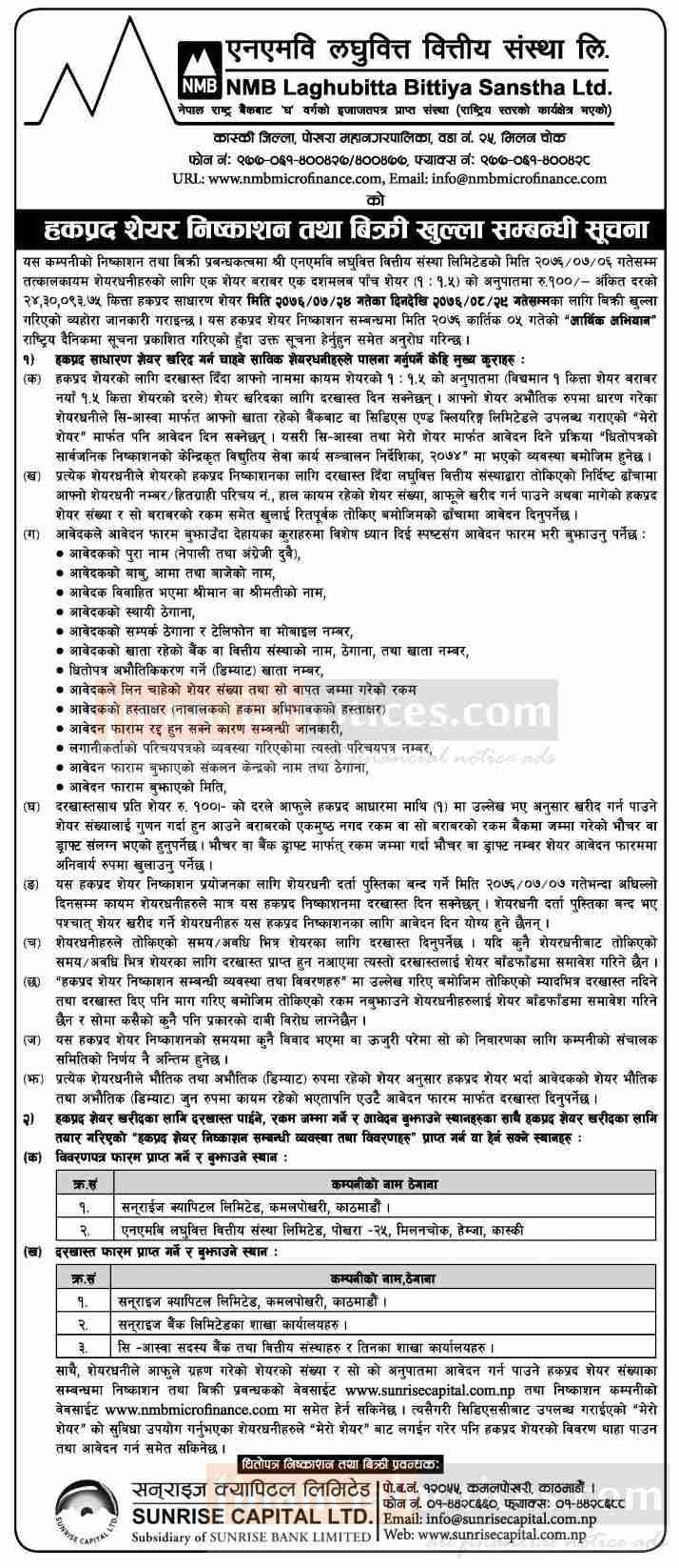 हकप्रद शेयर निश्कासन तथा विक्रि खुल्लाको सूचना