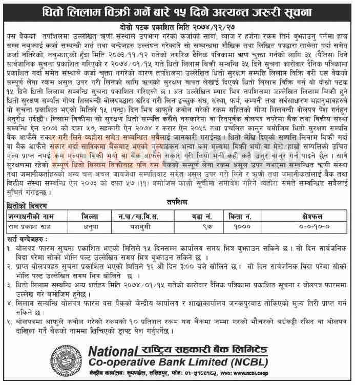 Published by National Cooperative Bank Rajdhani Newspaper on 2074-12-27
