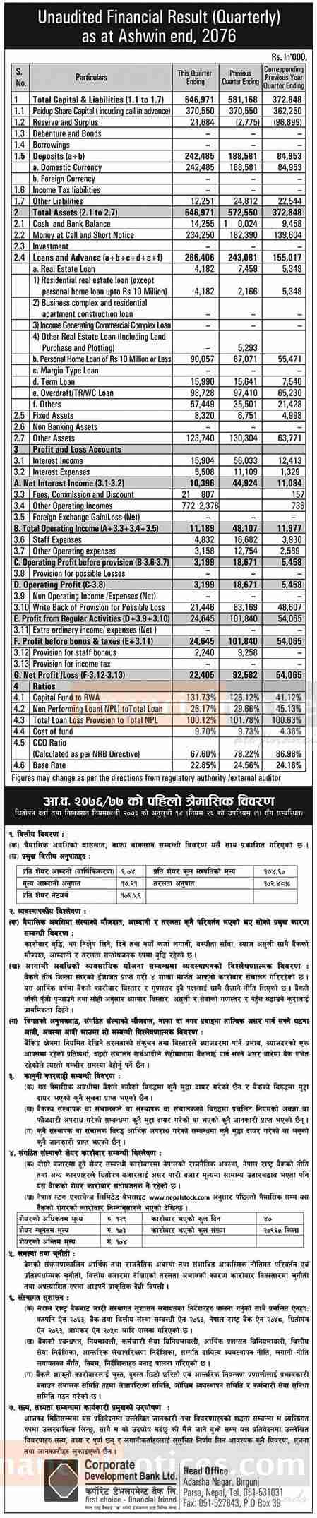 Published by Corporate Development Bank Annapurna Post on 2076-7-30