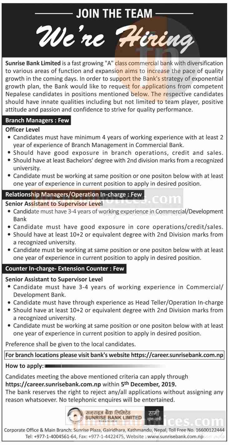 Published by Sunrise Bank Limited Official Page on 2076-8-05