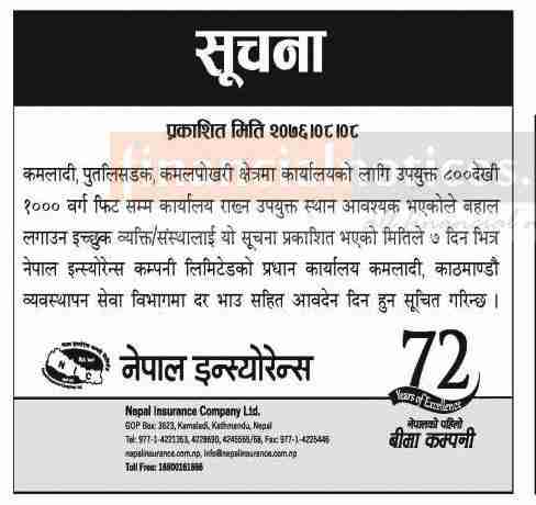 Published by Nepal Insurance Company Official Page on 2076-8-08