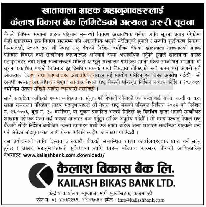 Published by Kailash Bikas Bank Official Page on 2076-8-12