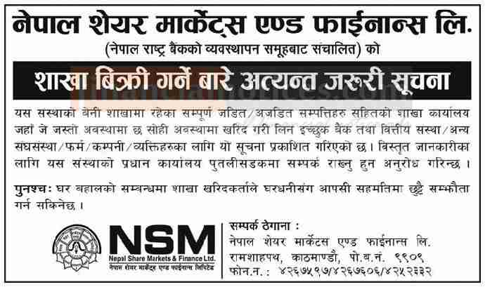 Published by NEPAL SHARE MARKETS AND FINANCE LTD Rajdhani Newspaper on 2075-1-03