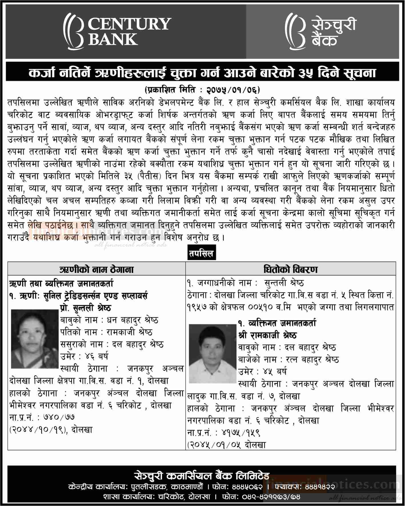 Published by Century Bank Ltd. Naya Patrika on 2075-1-06