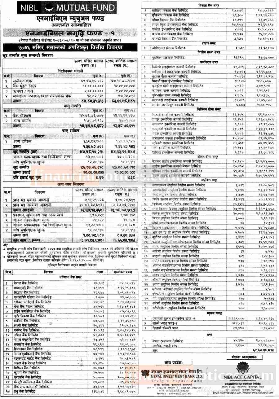 “NIBL Samriddhi Fund-1” Net Assets Value