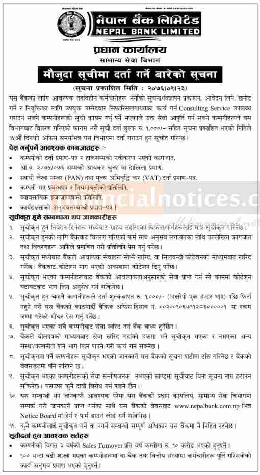 Published by Nepal Bank Limited Official Page on 2076-9-23