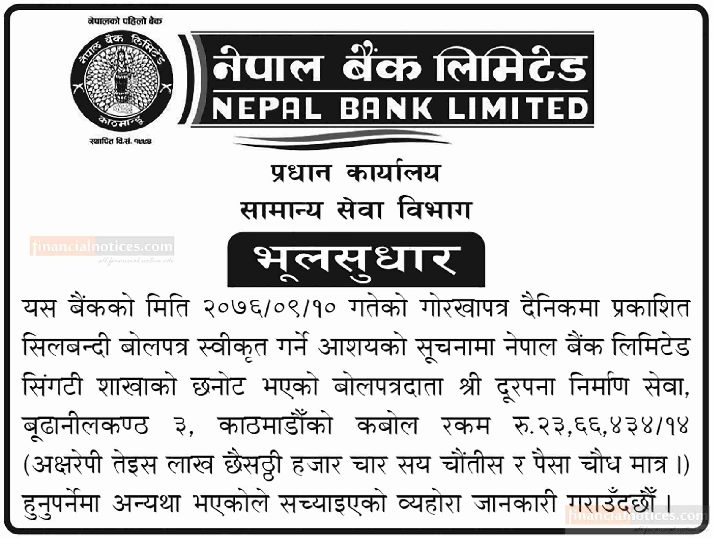 Published by Nepal Bank Limited Gorkha Patra on 2076-10-05