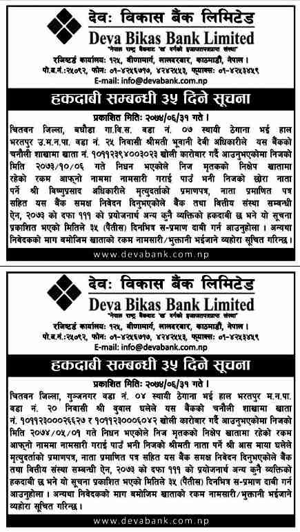 Published by Deva Bikas Bank Annapurna Post on 2074-6-30