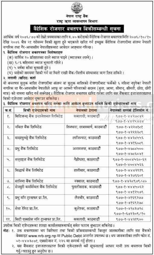 वैदेशिक रोजगार बचतपत्र बिक्रिसम्बन्धी सूचना
