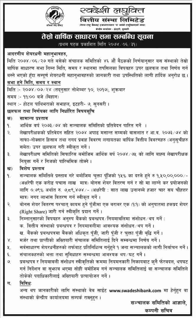Published by Swadeshi Laghubitta Annapurna Post on 2074-6-30