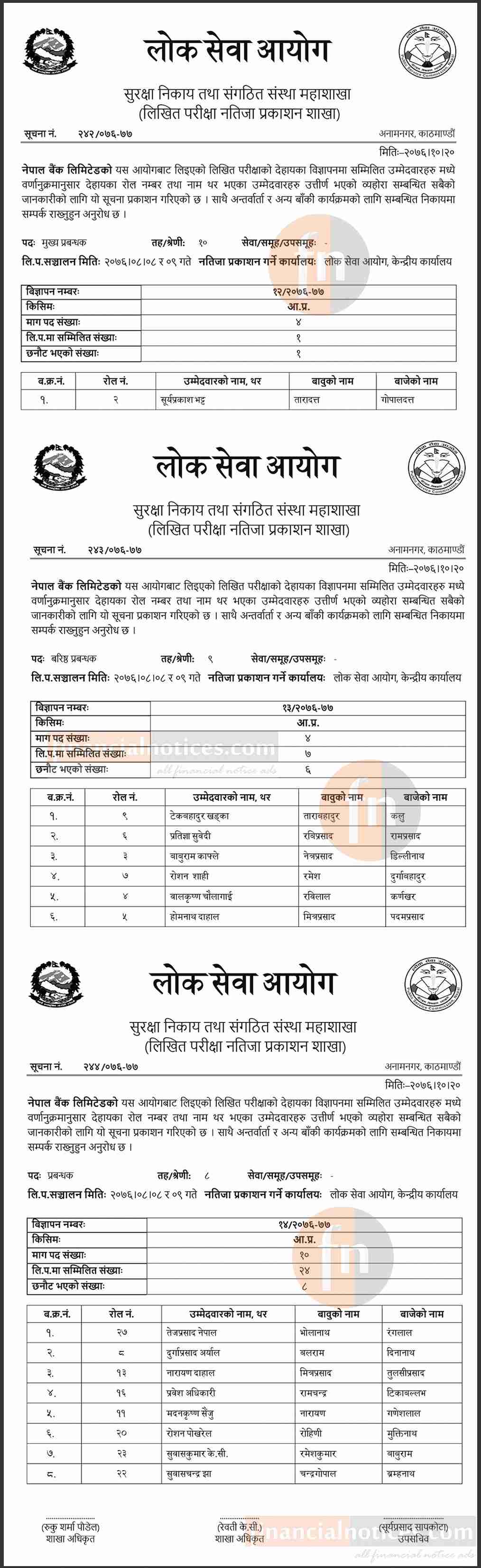 लिखित परीक्षाको नतिजा प्रकाशित