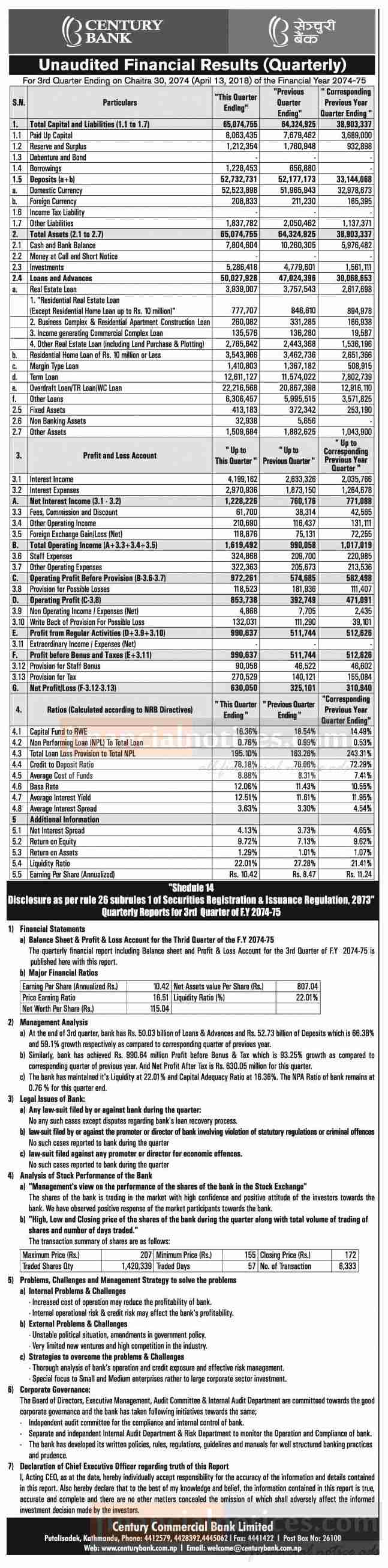 Published by Century Bank Ltd. Nagarik Newspaper on 2075-1-11
