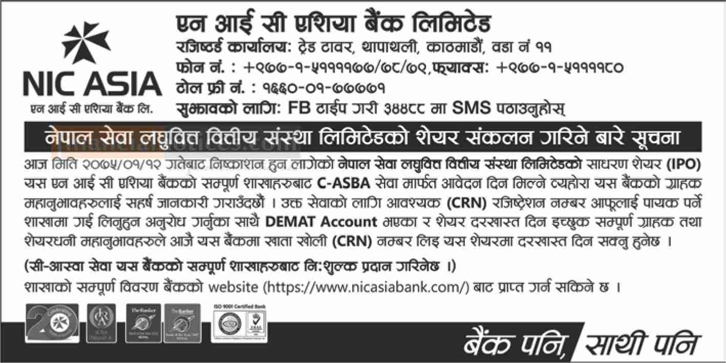 Published by NIC Asia Bank Kantipur Newspaper on 2075-1-12