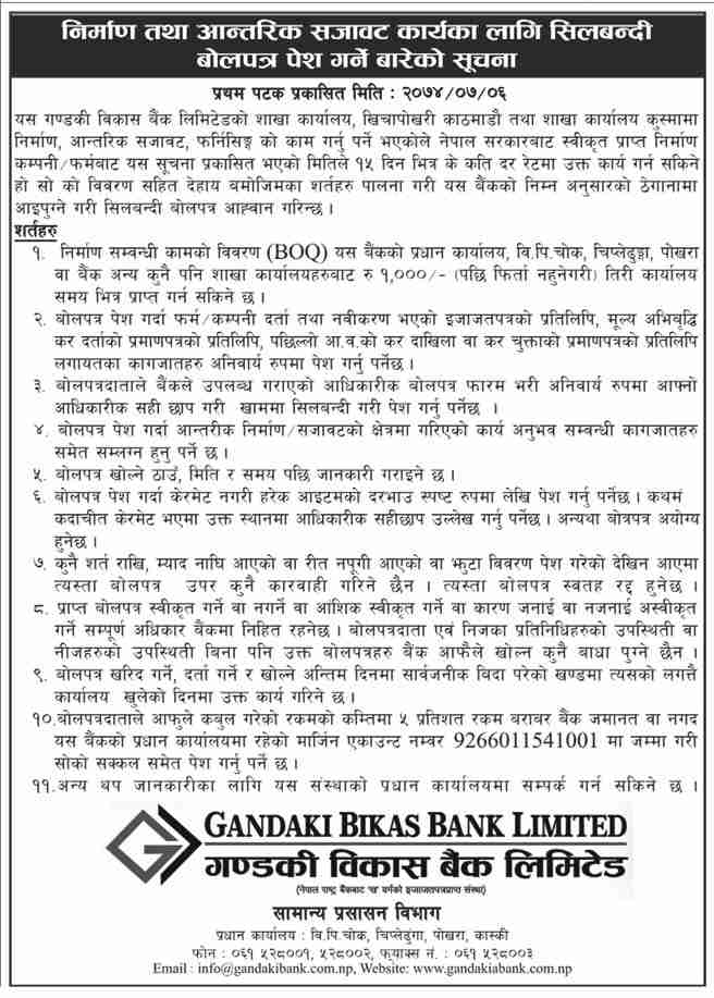 Published by Gandaki Bikas Bank Annapurna Post on 2074-7-06