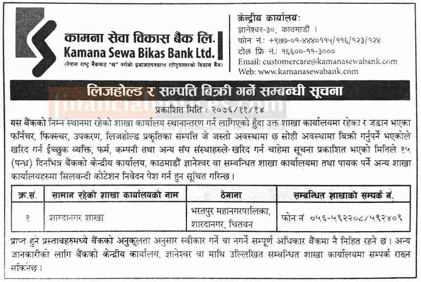Published by Kamana Sewa Bikas Bank Karobar Daily on 2076-11-14