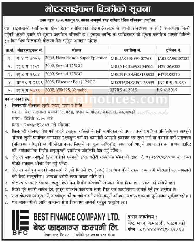 मोटरसाइकल बिक्रीको सूचना