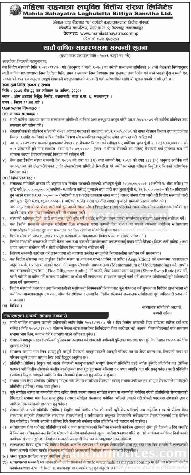 Published by Mahila Sahayatra Laghubitta Official Page on 2076-11-22