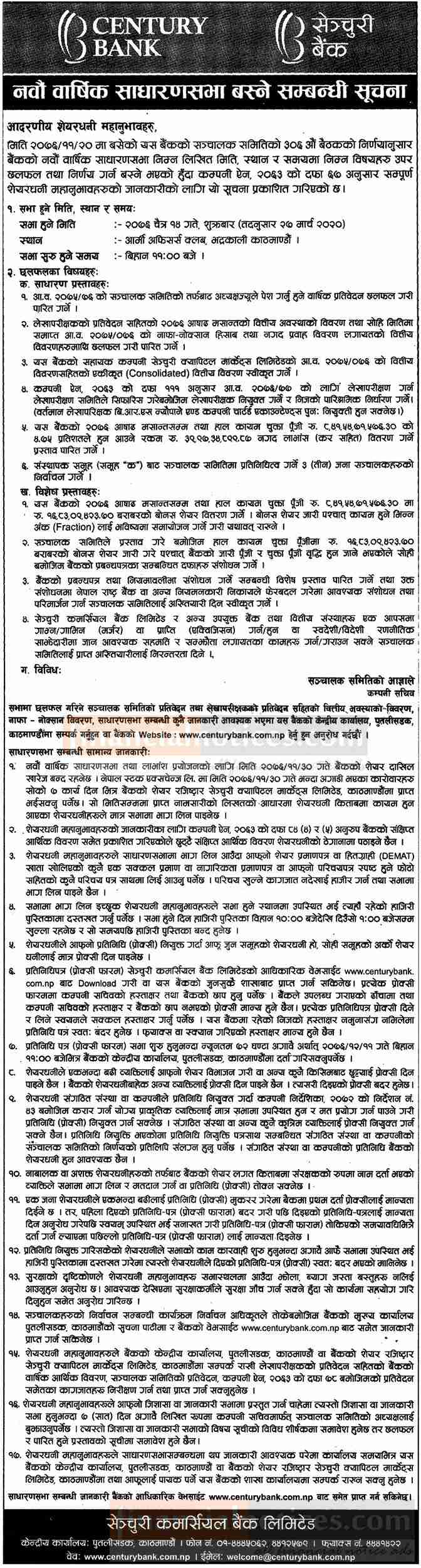 Published by Century Bank Ltd. Karobar Daily on 2076-11-22