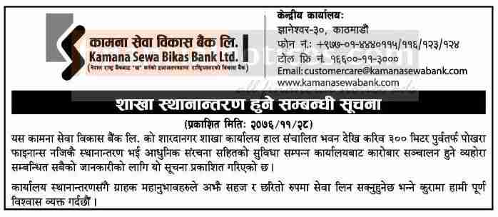 Published by Kamana Sewa Bikas Bank Official Page on 2076-11-28