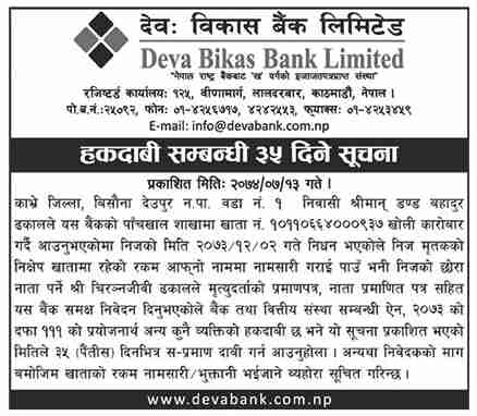 Published by Deva Bikas Bank Annapurna Post on 2074-7-13