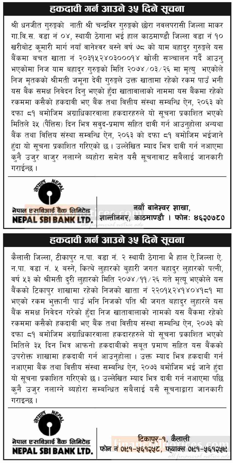हकदावी गर्न आउने ३५ दिने सूचना !!!
