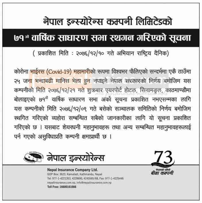 Published by Nepal Insurance Company Abhiyan Newspaper on 2076-12-10