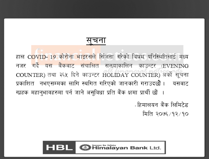 Published by Himalayan Bank Ltd Official Page on 2076-12-10