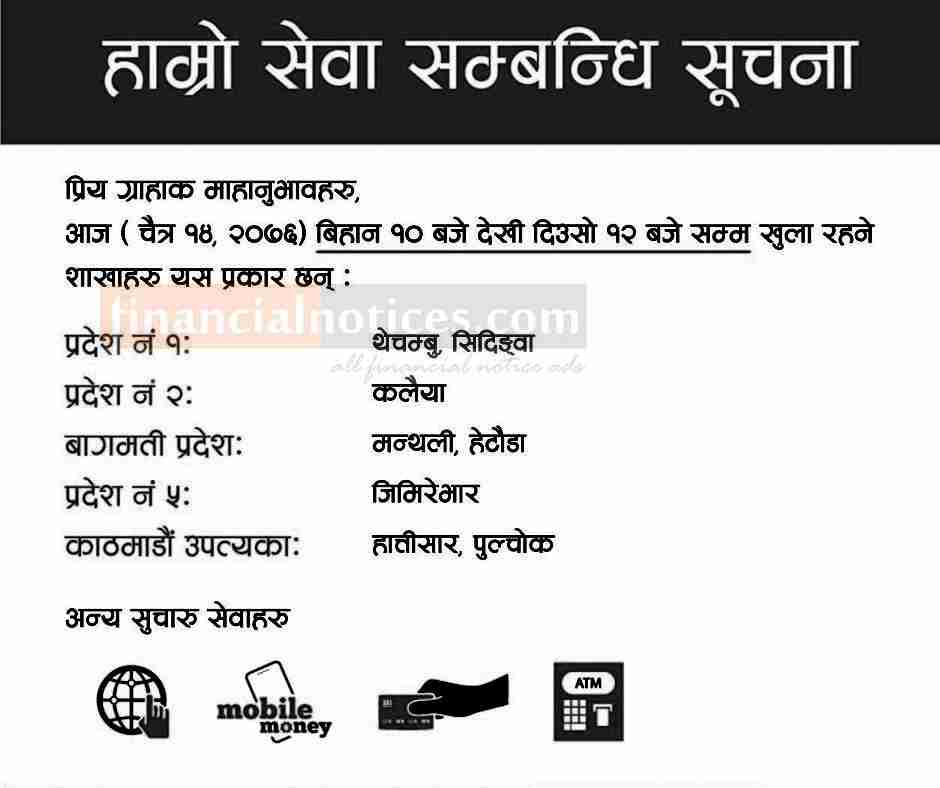 लक्ष्मी बैंकको सेवा सम्बन्धी सूचना