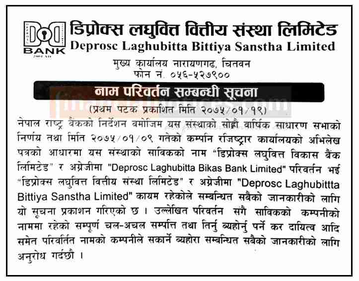 Published by Deprosc Laghubitta Karobar Newspaper on 2075-1-19