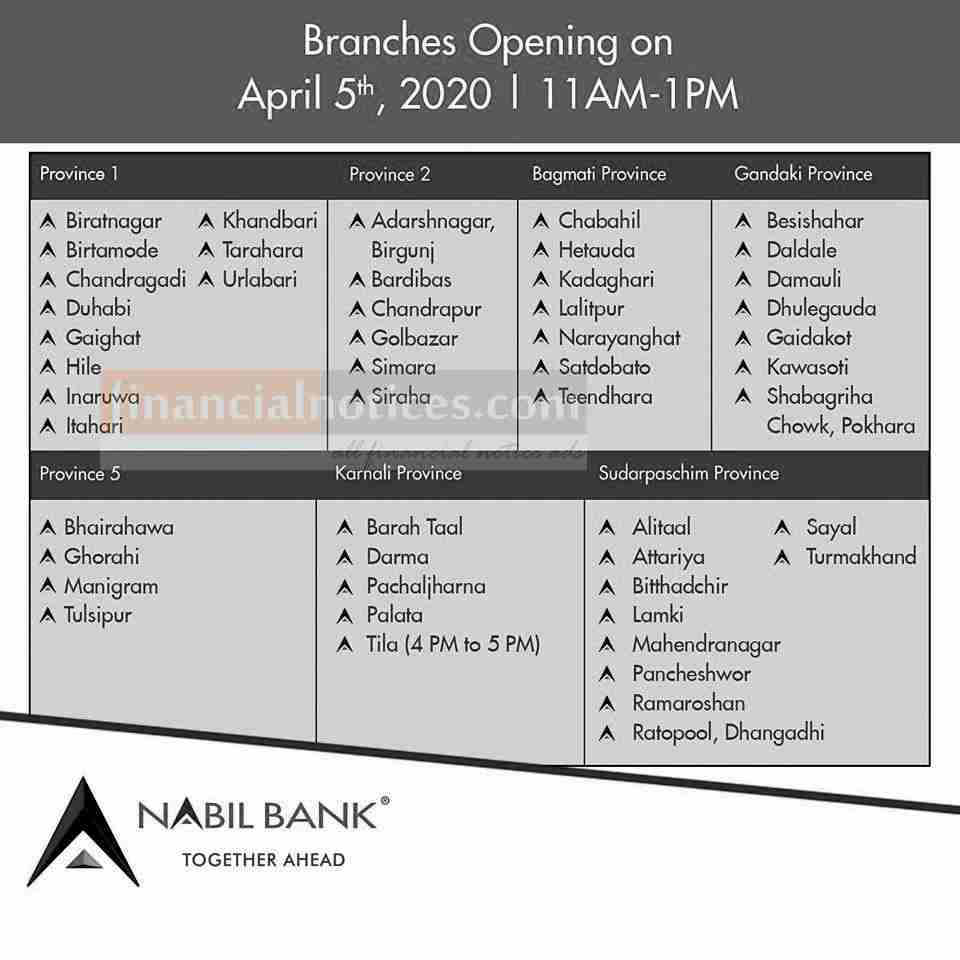 नविल बैंकको आइतबार खुल्ने शाखाहरु