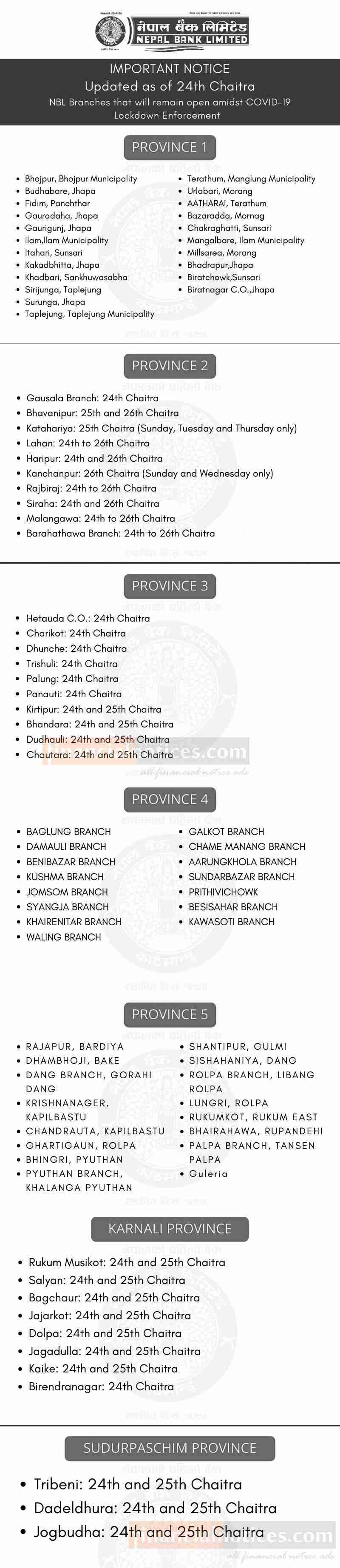 शाखाहरु खुल्ला रहने सूचना- Province 1 - 7