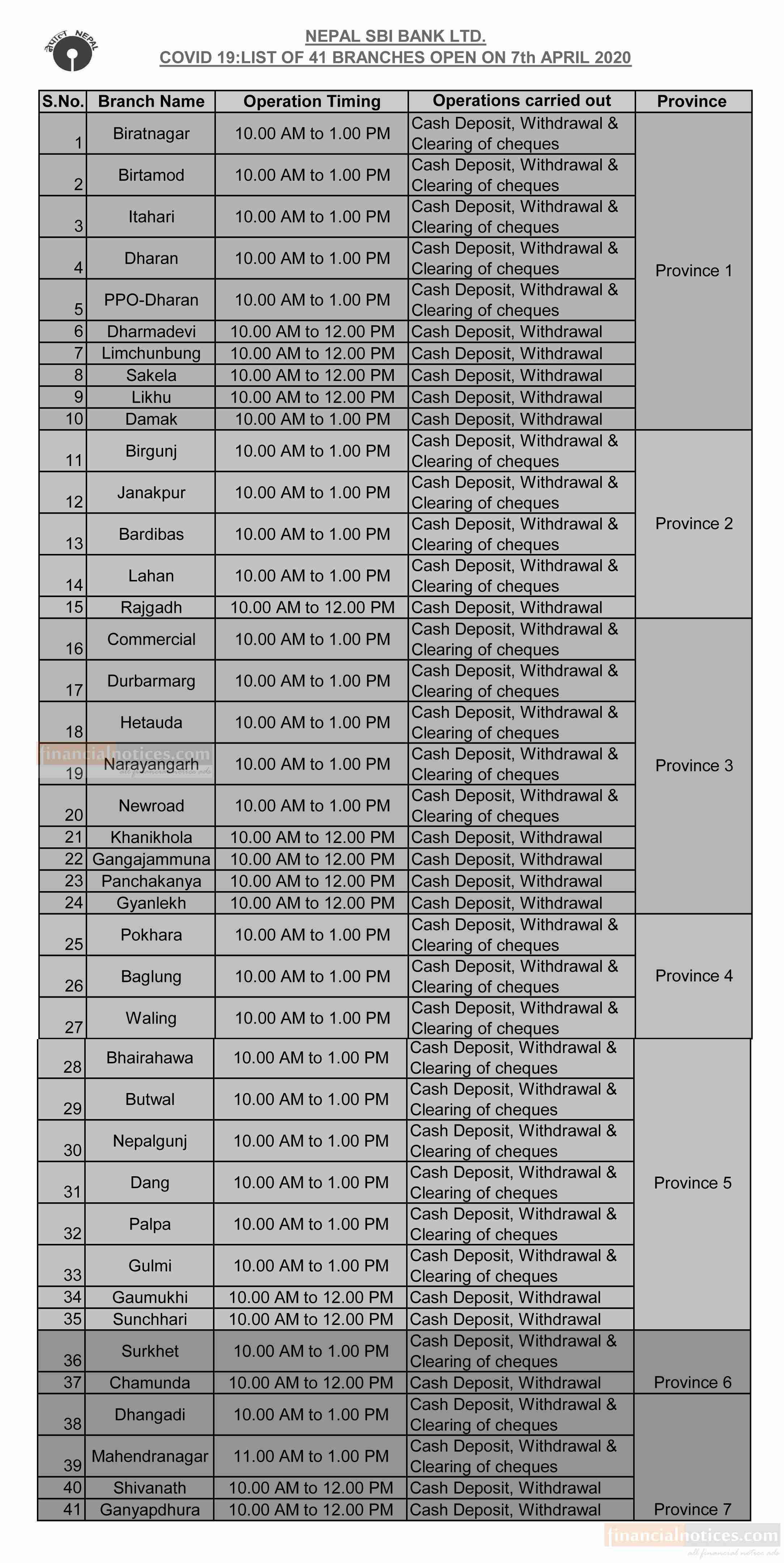 नेपाल SBI बैंकको आज खुल्ला रहने शाखाहरु