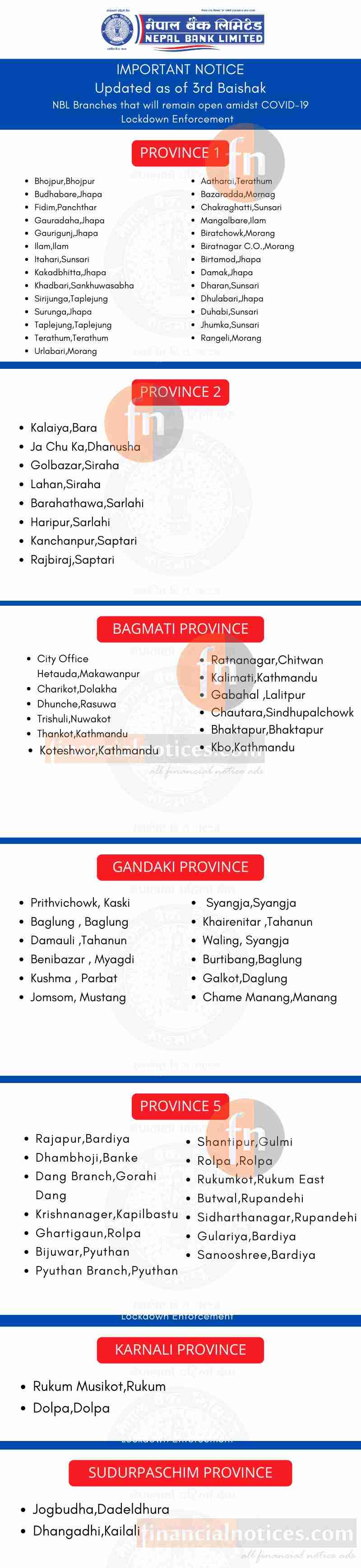 नेपाल बैंकको आज खुल्ला रहने शाखाहरु (प्रदेश १–७)