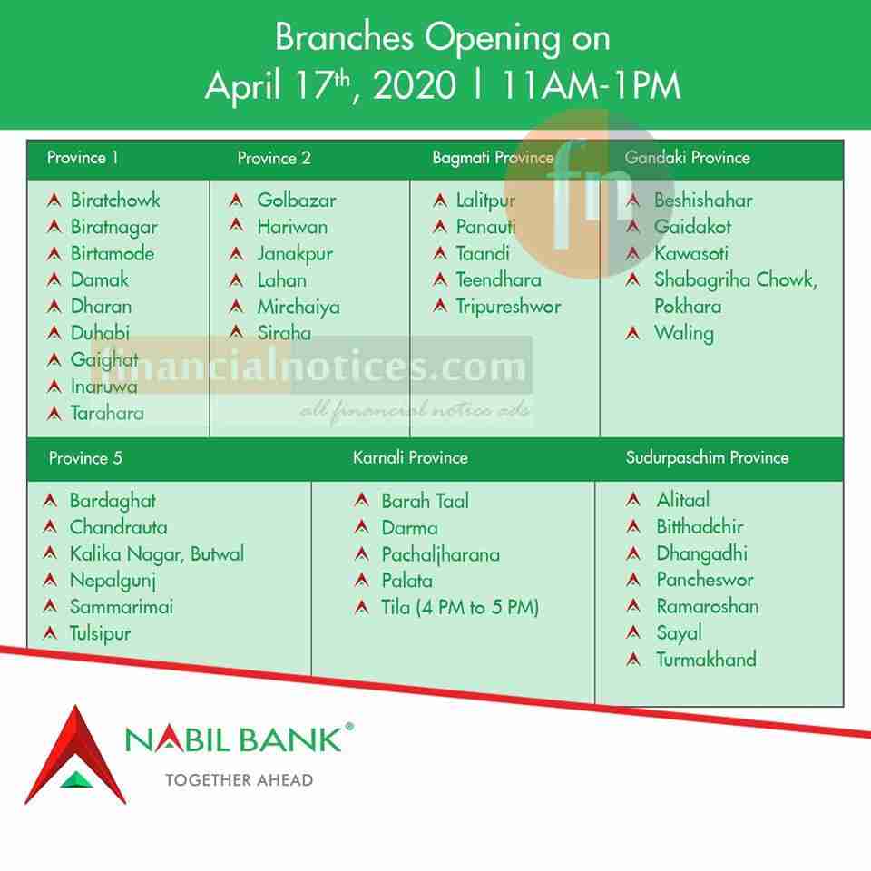 नबिल बैंकले आज बैंकिङ सेवा दिने शाखाहरु
