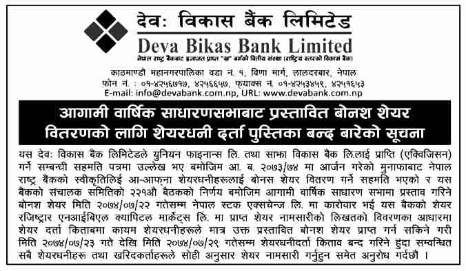 Published by Deva Bikas Bank Annapurna Post on 2074-7-15