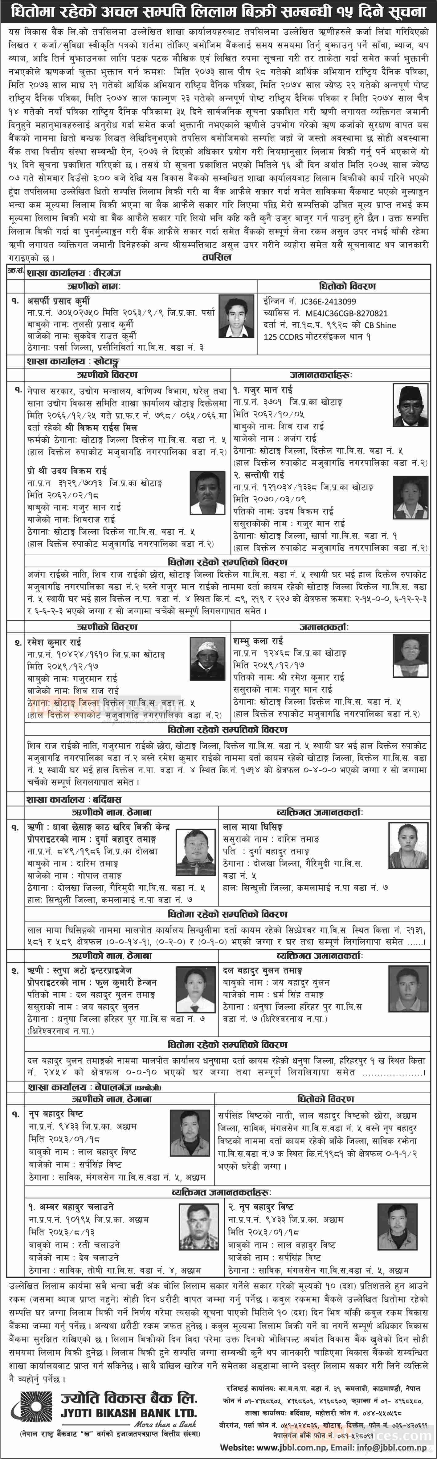 धितोमा रहेको सम्पत्ति लिलामी विक्रिको सूचना !!!