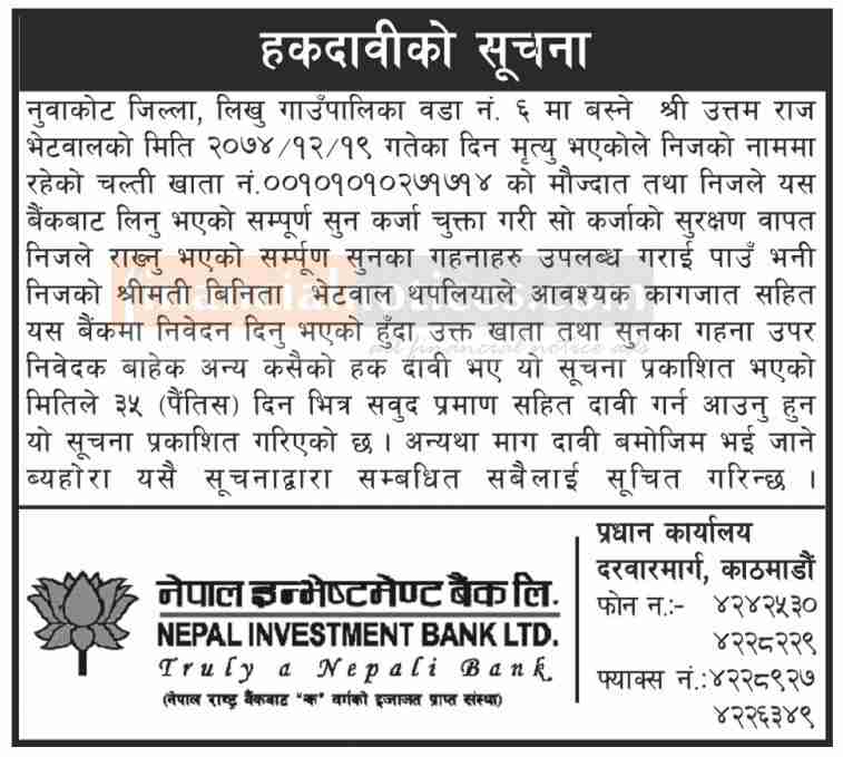हकदावीको सूचना !