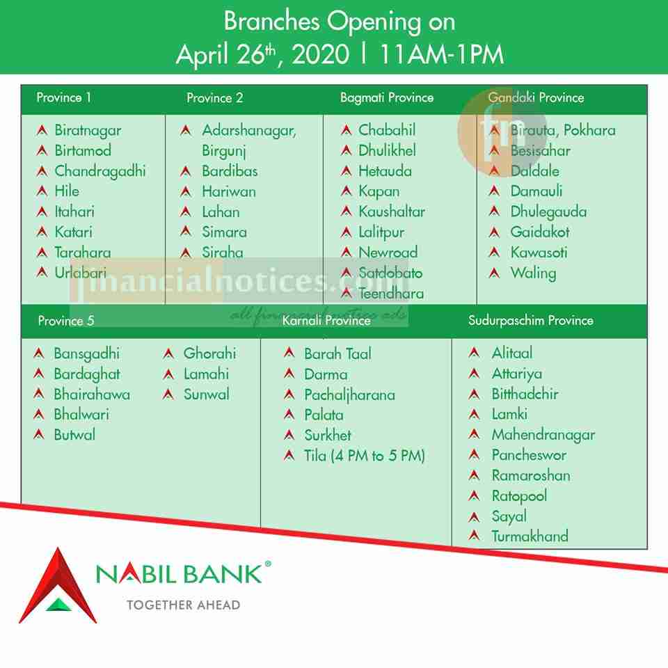 Nabil बैंकको शाखाहरु खुल्ने सम्बन्धि सूचना