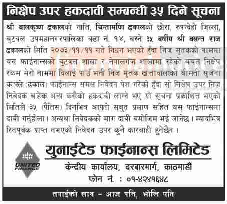 Published by United Finance Rajdhani Newspaper on 2075-1-24