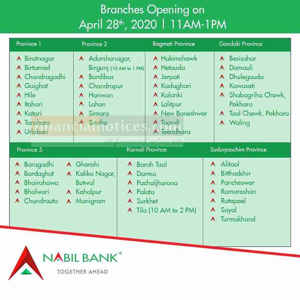 Nabil बैंकको शाखाहरु खुल्ने सम्बन्धि सूचना
