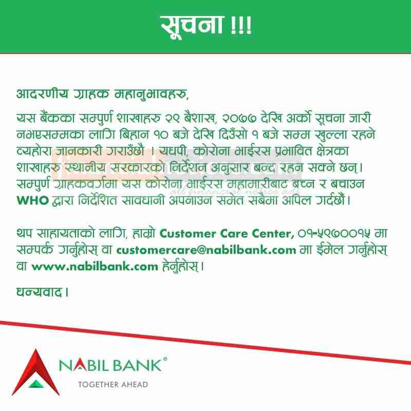 Nabil बैंकको शाखाहरु खुल्ने सम्बन्धि सूचना