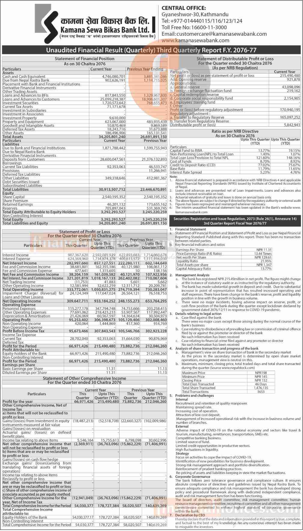 Published by Kamana Sewa Bikas Bank Official Page on 2077-1-31