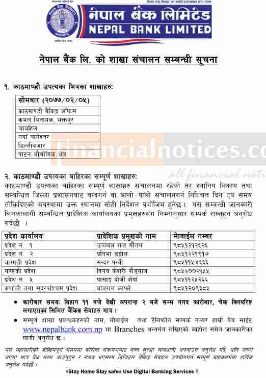 नेपाल बैंकको आज जेष्ठ ५ गते खुल्ला रहने शाखा समय