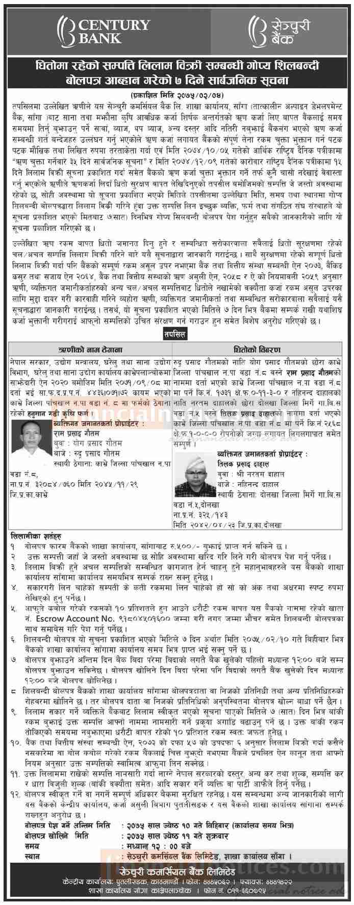 Published by Century Bank Ltd. Rajdhani Newspaper on 2075-2-04